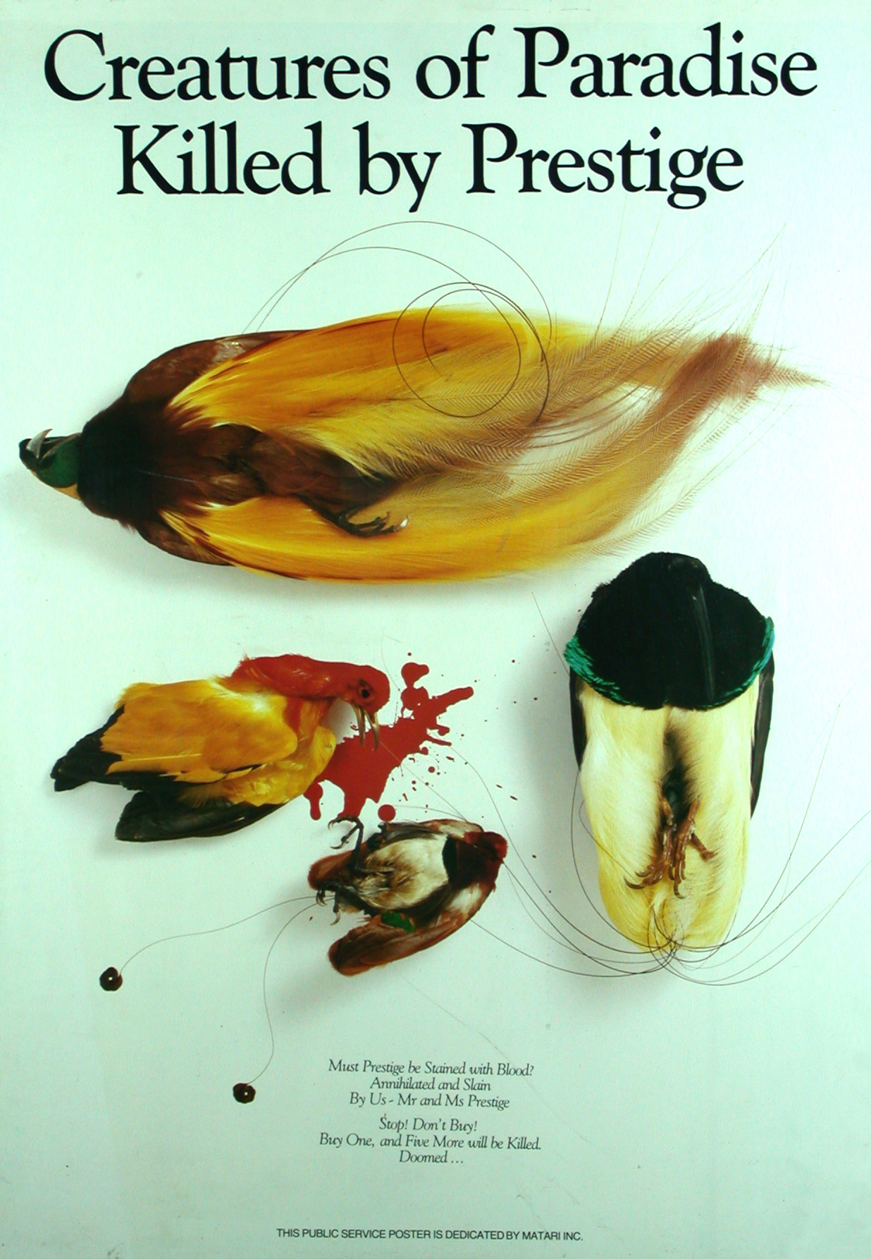 Tahun 1989 Poster Wild Life Protection versi Creatures of Paradise Killed by Prestige, katergori Public Service Ad: Political, mendapatkan The 30th Annual Clio Awards Honoring Advertising Excellence Clio Awards.